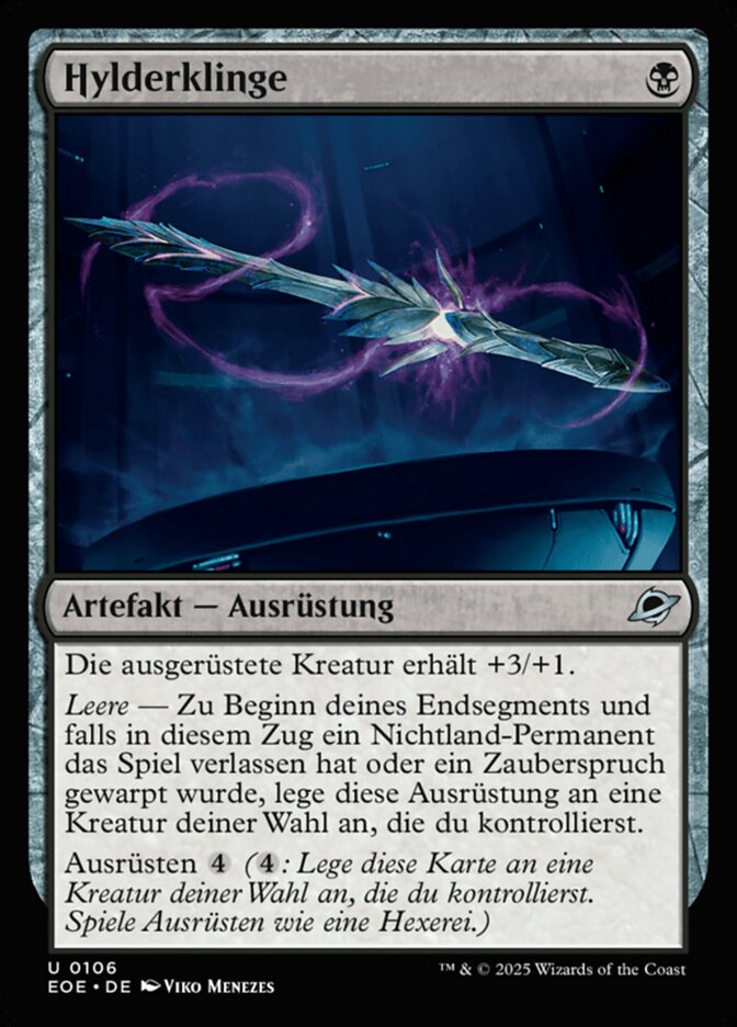 Void - At the beginning of your end step, if a nonland permanent left the battlefield this turn or a spell was warped this turn, attach this Equipment to target creature you control.