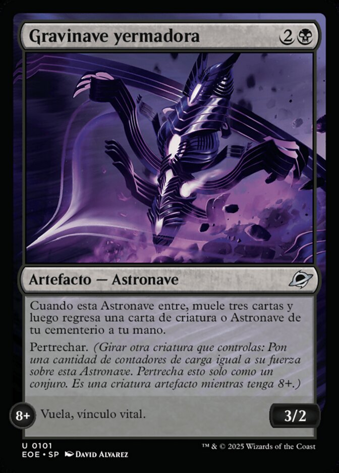 When this Spacecraft enters, mill three cards, then return a creature or Spacecraft card from your graveyard to your hand.