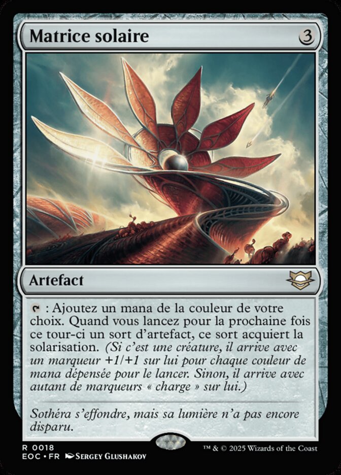 {T}: Add one mana of any color. When you next cast an artifact spell this turn, that spell gains sunburst. (If it's a creature, it enters with a +1/+1 counter on it for each color of mana spent to cast it. Otherwise, it enters with that many charge counters on it.)