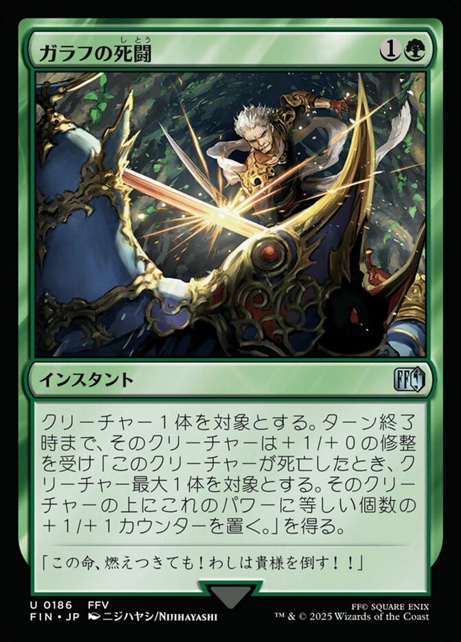クリーチャー1体を対象とする。ターン終了時まで、そのクリーチャーは+1/+0の修整を受け「このクリーチャーが死亡したとき、クリーチャー最大1体を対象とする。そのクリーチャーの上にこれのパワーに等しい個数の+1/+1カウンターを置く。」を得る。