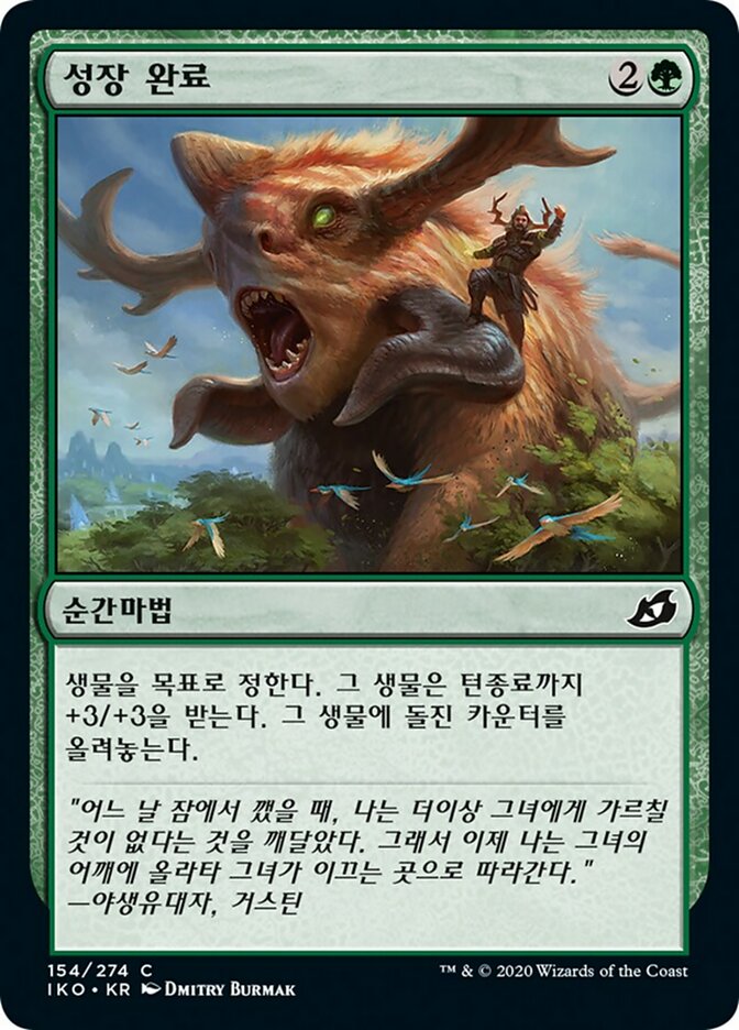 생물을 목표로 정한다. 그 생물은 턴종료까지 +3/+3을 받는다. 그 생물에 돌진 카운터를 올려놓는다.